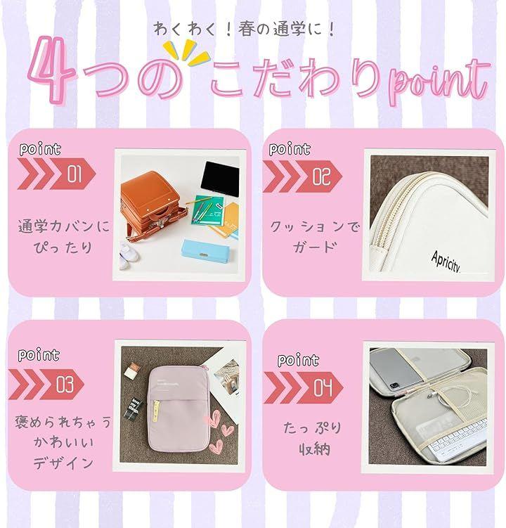 当商品は11インチ対応(外寸:約24cmx約33.5cm、内寸:約21.5cmx約31cm)で、ランドセルやスクールバッグに無理なく入る安心サイズです。