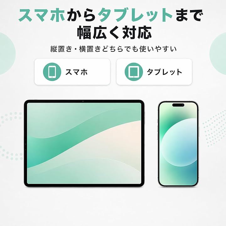 「縦横どちらも快適」スマホやタブレットを縦置き・横置きで使えるため、SNS確認、レシピ閲覧、学習、在宅ワークにも便利。