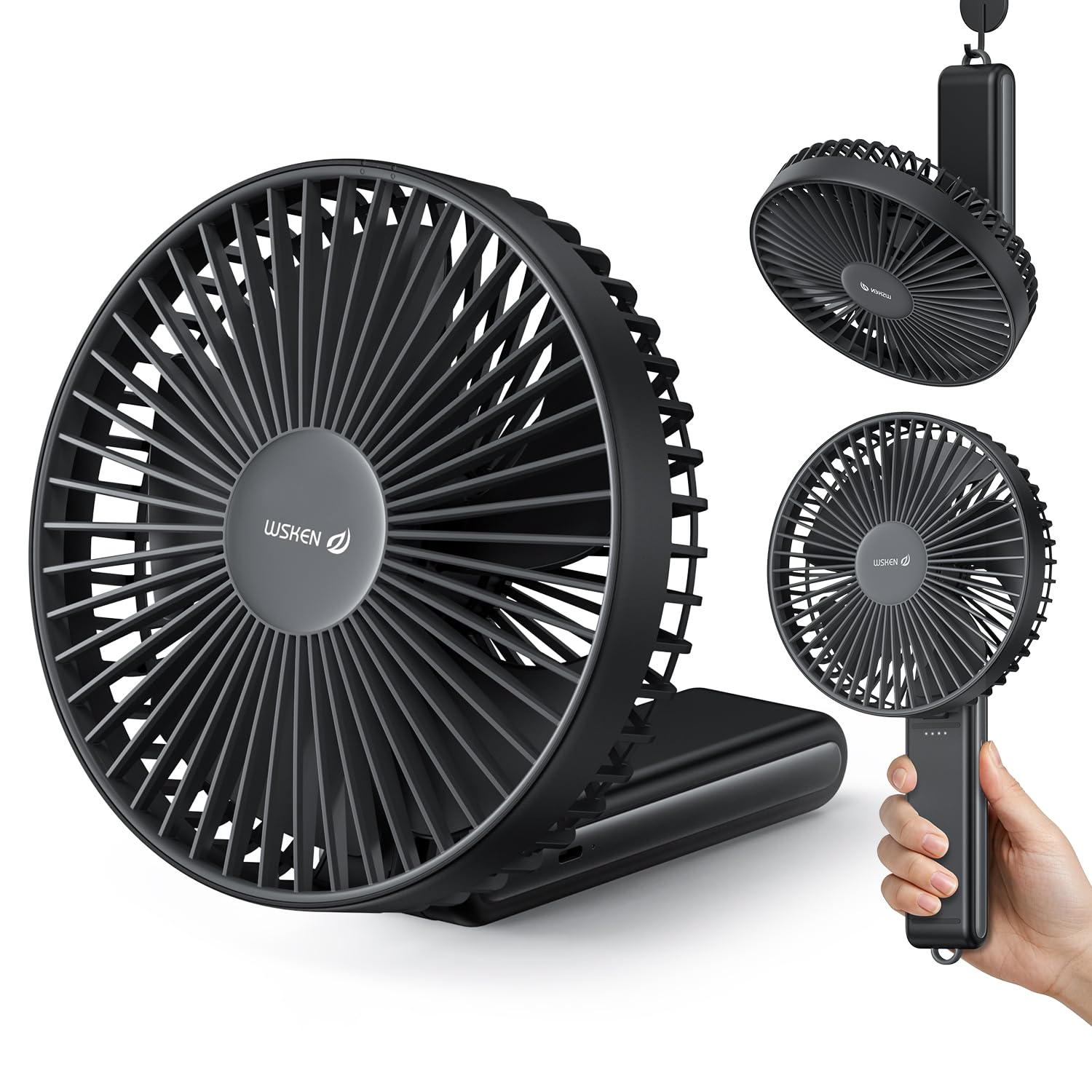 卓上扇風機 携帯扇風機 手持ち扇風機 4000mAh大容量 最長20時間連続使用 4段階風量調節 ハンディファン 折りたたみ可能 20dB静音 超強力送風 持ち運びに便利 壁掛け/手持ち/首掛け/卓上 USB充電式 熱中症対策 暑さ対策 安全設計 オフィス/スポーツ観戦/花火大会/夏祭り ギフトに最適 日本語取扱説明書付き『2025夏新設計・瞬時冷感』 WSKEN(ブラック)