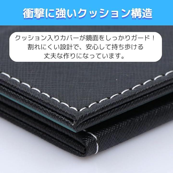 「クッション入りで割れにくい」カバーにクッションが入っているから、鏡面をしっかり保護。万が一の衝撃でも割れにくく、長く安心してお使いいただけます。
