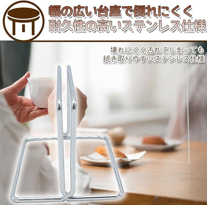 無加工のアクリル板を挟むだけで簡単に卓上パーテーションができあがる、パーテーション用のスタンドです。