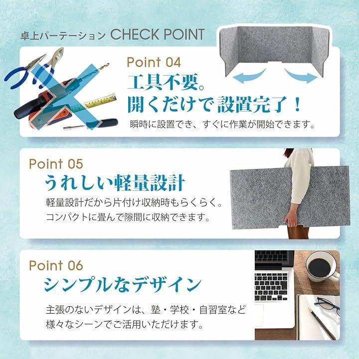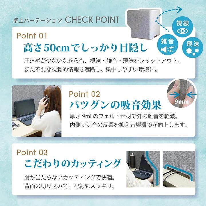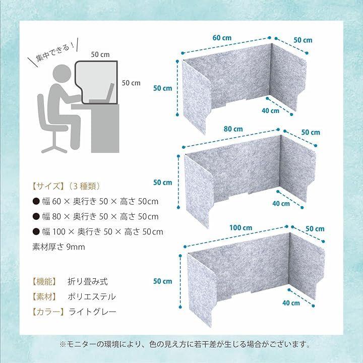 インテリアに合わせやすい、集中力アップのライトグレー、高さ50センチで圧迫感も少なくしっかり目隠し。