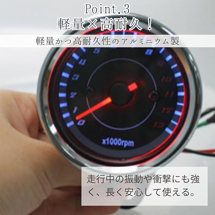 「夜間でも安心の視認性」メーターはバックライト付きなので、夜間やトンネル内でも速度がくっきり見えます。