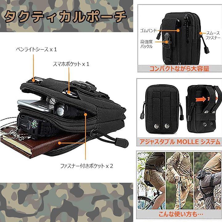 ファスナー付きポケットx2、スマホポケットx1、ペンライトシースx1