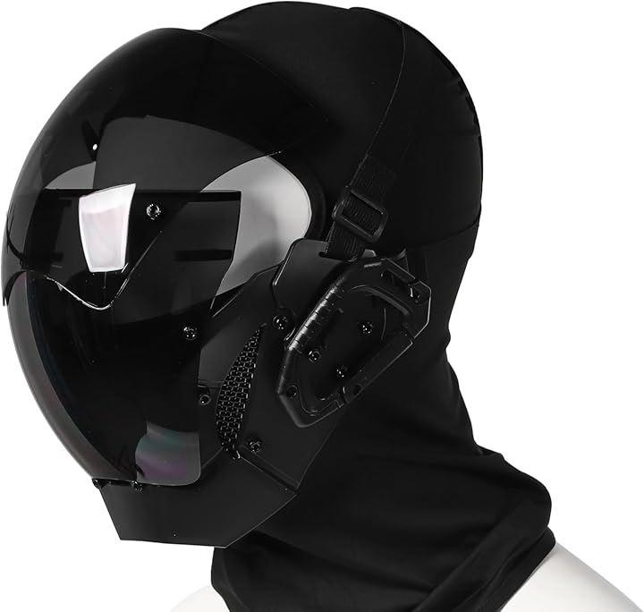 重量:マスクのみ 約 400g モノトーン の ブラック カラー と独特な形状で、まるで未来の ヒーロー のような印象を与えるフルフェイスマスク。