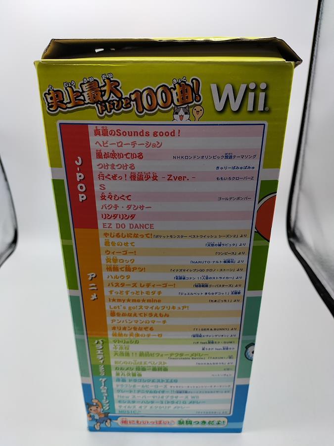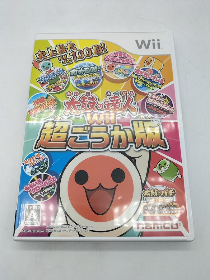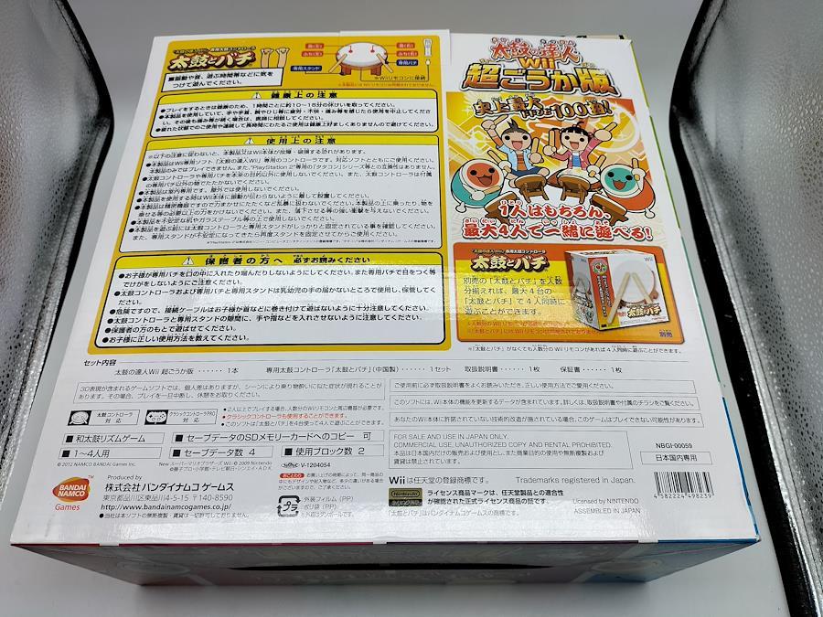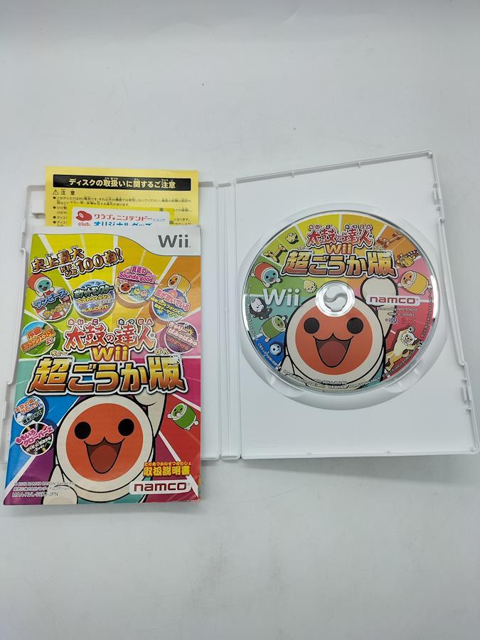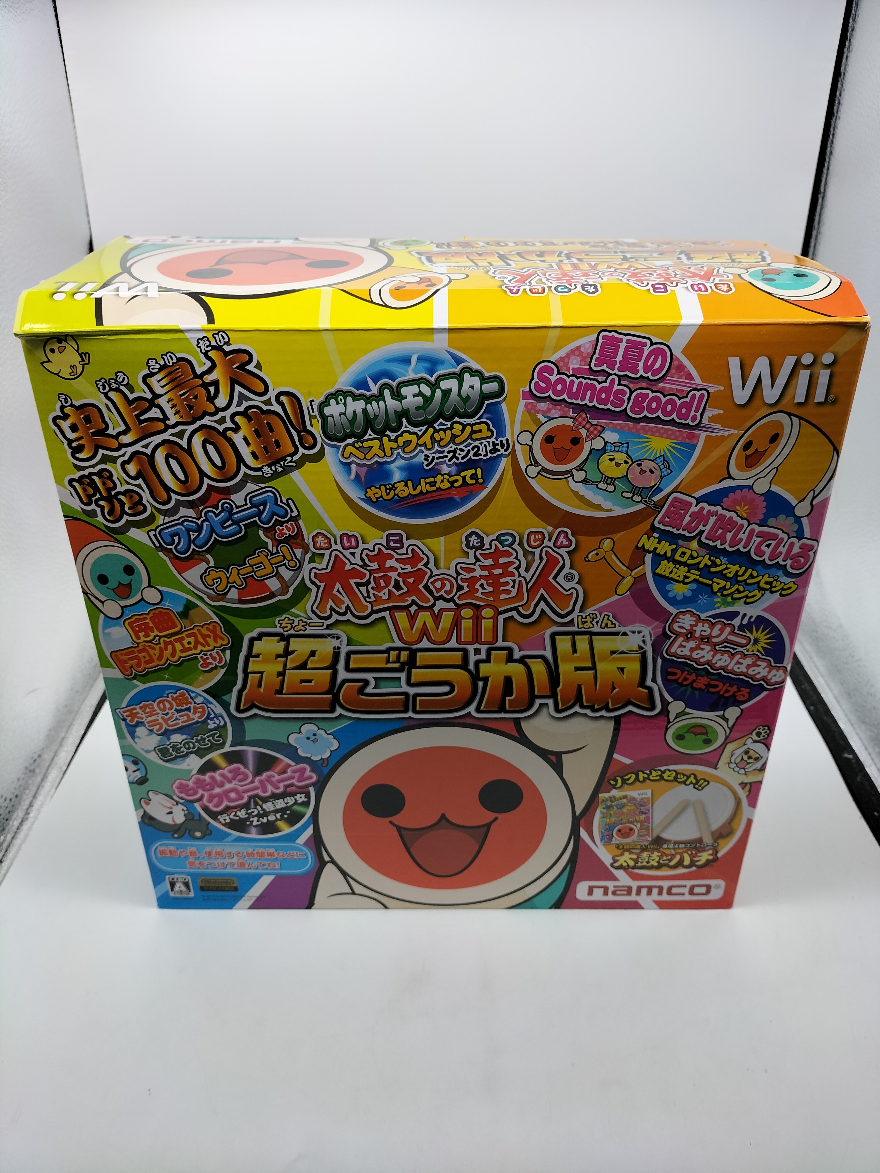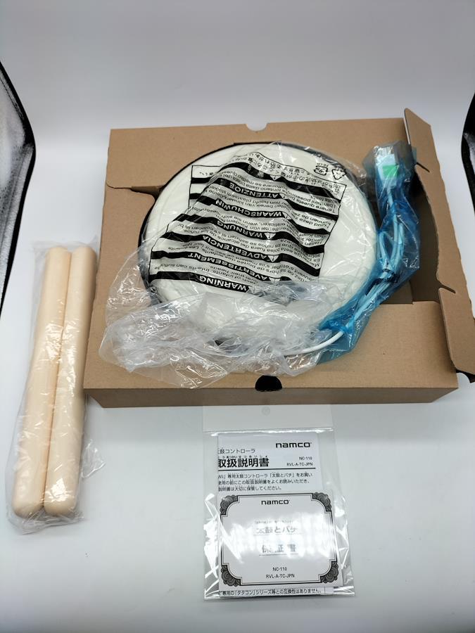 ■付属品箱イタミあり、取扱説明書、太鼓の達人Wii超ごうか版ソフト(小キズあり)、太鼓、バチ