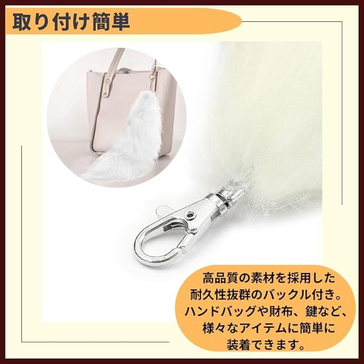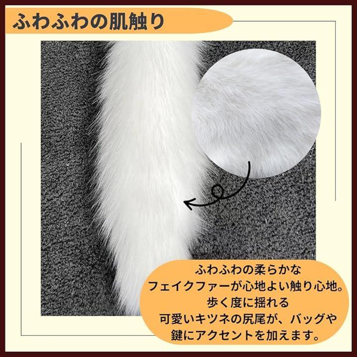 歩く度に揺れる可愛いキツネの尻尾が、バッグや鍵にアクセントを加えます。