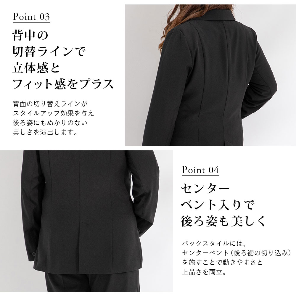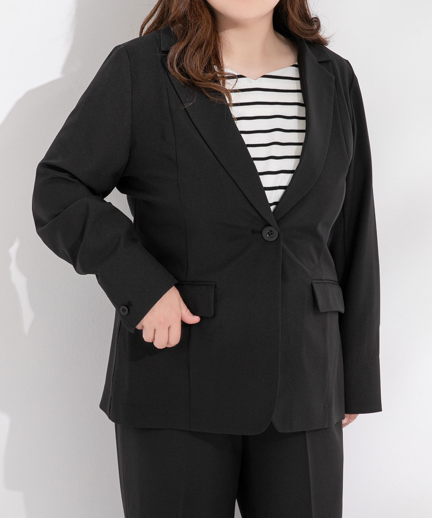 体型に合わせたフィット感を実現。3Lから6Lのサイズ展開があり、セットアップとして他のアイテムと合わせることで、洗練されたスタイルを楽しめます。