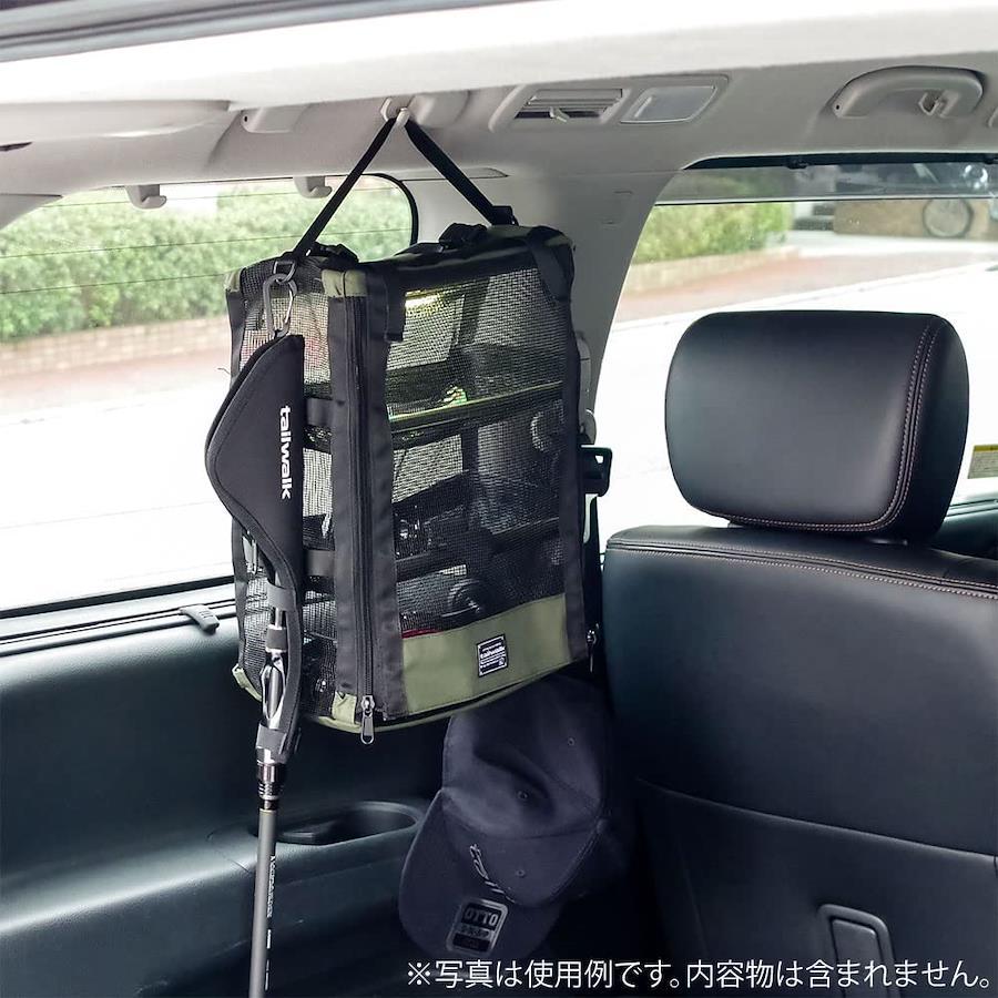 リール、ルアー、アクセサリー類などの釣り道具をコンパクトに収納できるHANGING(吊り下げ)式ラック。側面が全てラバーコーティング&メッシュタイプとなっているので、収納したタックルが一目でわかるうえに通気性も抜群。濡れたタックルたちをそのまま入れても問題はなく、しばらく置いて乾かすといった使い方も可能。また、中の仕切りも全てメッシュ仕様×ラバーコーティングされており、収納するタックルの大きさに応じて収納スペースを1~3室に可変できる。様々なシチュエーションで出番の多い便利アイテム。