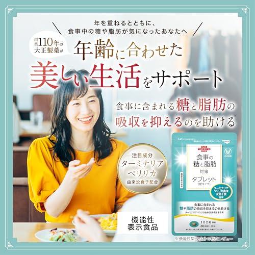 ??[ 楽しい食事と一緒に! ]食事の糖と脂肪 が気になる方のために、大正製薬から新しい 食事の糖と脂肪の 対策サプリメント が登場しました。毎日の美味しい食事を楽しみながら、1日2粒*? の新習慣を始めませんか? *?1日摂取量目安 ??[ このような方におすすめのサプリメントです ]「食事と一緒に対策したい」「健康な毎日を目指したい」「何か手軽に続けられるものが欲しい」 ??[ <ターミナリアベリリカ由来没食子酸>を配合【1】 ]●食事の 脂肪 や糖の吸収を抑える。<ターミナリアベリリカ由来没食子酸>は落葉樹「ターミナリアアベリリカ」の果実から抽出した機能性素材で、ポリフェノールを豊富に含有しています ??[ <ターミナリアベリリカ由来没食子酸>を配合【2】 ]『食事の糖と脂肪対策タブレット』の「ターミナリアアベリリカ由来没食子酸」を適度な運動、バランスの良い食事と合わせて摂取することで、食事の脂肪と糖の対策をしましょう! ??[ 大正製薬 の4つのお約束 ]<確かな品質><信頼できる商品><お客様サポート>< 健康 づくりを応援>大正製薬は、製造時の厳しいチェック・1粒1粒の念入りな確認を徹底!