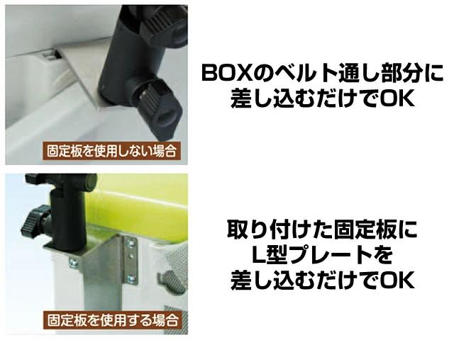 適応タイプのクーラーボックスであれば、ベルト通しの部分にL型プレートを差し込むだけでOK!