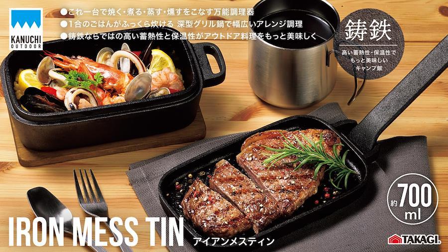 Takagi KANUCHI OUTDOOR Iron Messtin with Handle, Dutch Oven, Iron Plate, Lid, Cast Iron, Square, Black, 1 Cup, Full Capacity/Approx. 700ml, Rice Cooker, Pasta Cooker, Camping, Solo Camping, Outdoor, Barbecue