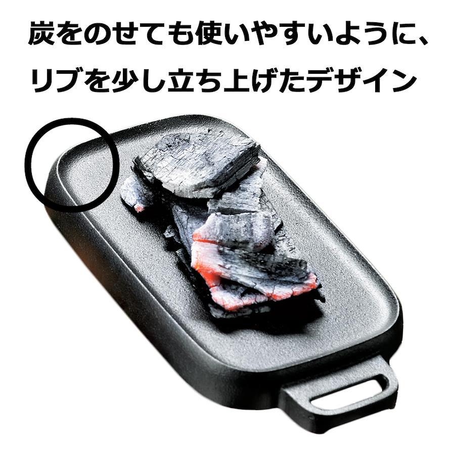 厚手の鋳鉄物で蓄熱性が高く、お米の炊飯の他、ダッチオーブンの様な調理が可能蓋に炭をのせて上下から熱を伝える炭をのせて使いやすいようリブを少し立ち上げ