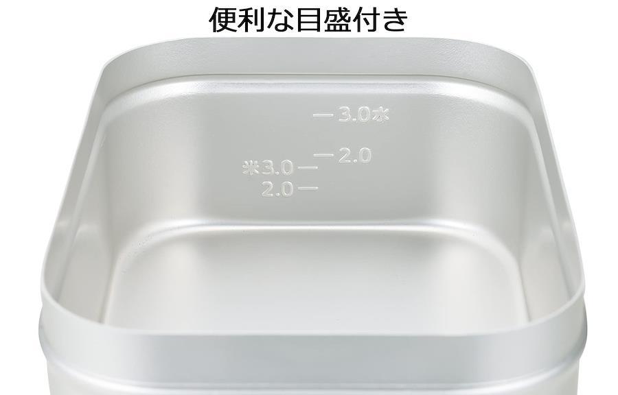 目盛り・リブ付き高い熱伝導率で熱が全体に回りご飯が美味しく炊ける軽量で持ち運びに便利固形燃料でご飯が炊けるご飯料理はもちろんパスタなどの麺類も調理可能2合用のメスティンを収納可能、持ち運びに便利