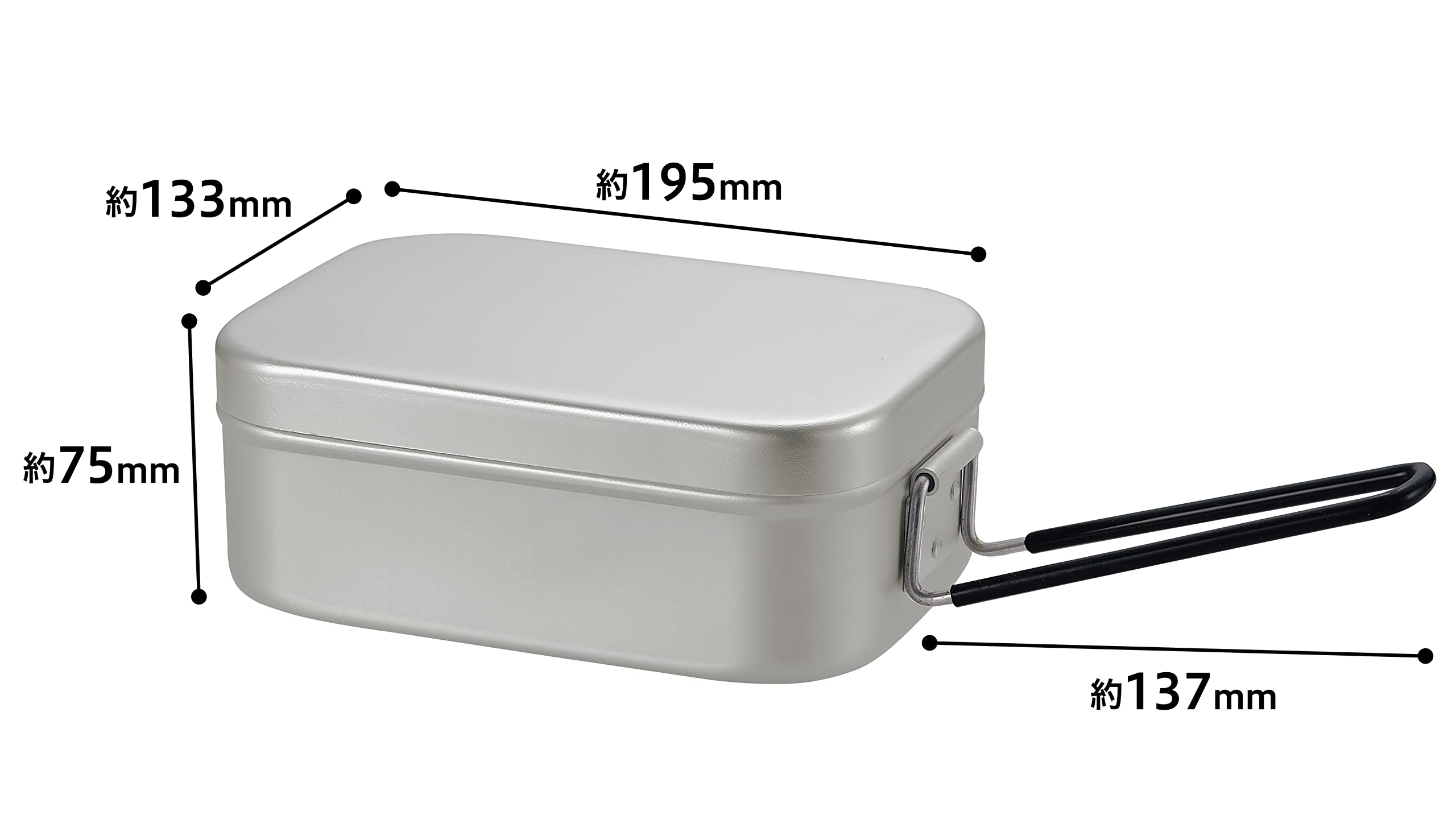 目盛り・リブ付き材質/本体:アルミニウム(底の厚さ:1mm)、フタ:アルミニウム、ハンドル:ステンレス鋼、ハンドルカバー:シリコーンゴム(耐熱温度:180℃)表面加工:アルマイト加工サイズ(内径):約幅188×高さ68×奥行き130(mm)満水容量:約1580ml