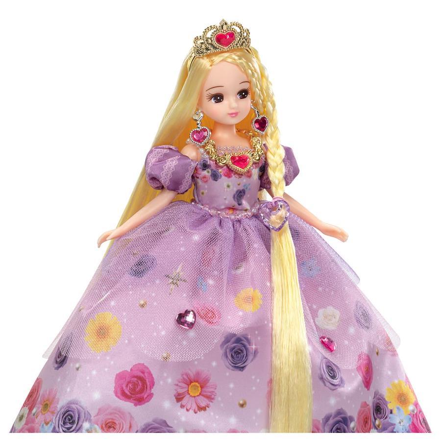 金髪のロングヘアーのリカちゃんです。お花いっぱいのプリンセスドレスに、ハートモチーフとローズモチーフのアクセサリーがいっぱいついています。足元まで伸びた金髪のロングヘアーのリカちゃんです。スカート一面に花がプリントされたワンピース、髪遊びしやすいようにクシがついています。アクセサリーはハートモチーフとローズモチーフの2セットです。【セット内容】人形本体(下着、ドレス着用)(1),クツ(1),クシ(1),ハートイヤリング(1),ローズイヤリング(1),ハートティアラ(1),ローズティアラ(1),ハートネックレス(1),ローズネックレス(1),リボンバッグ(1),ローズバッグ(1),ハートステッキ(1),ローズステッキ(1),ヘアゴム(1), (C) TOMY 電池は使用しません。