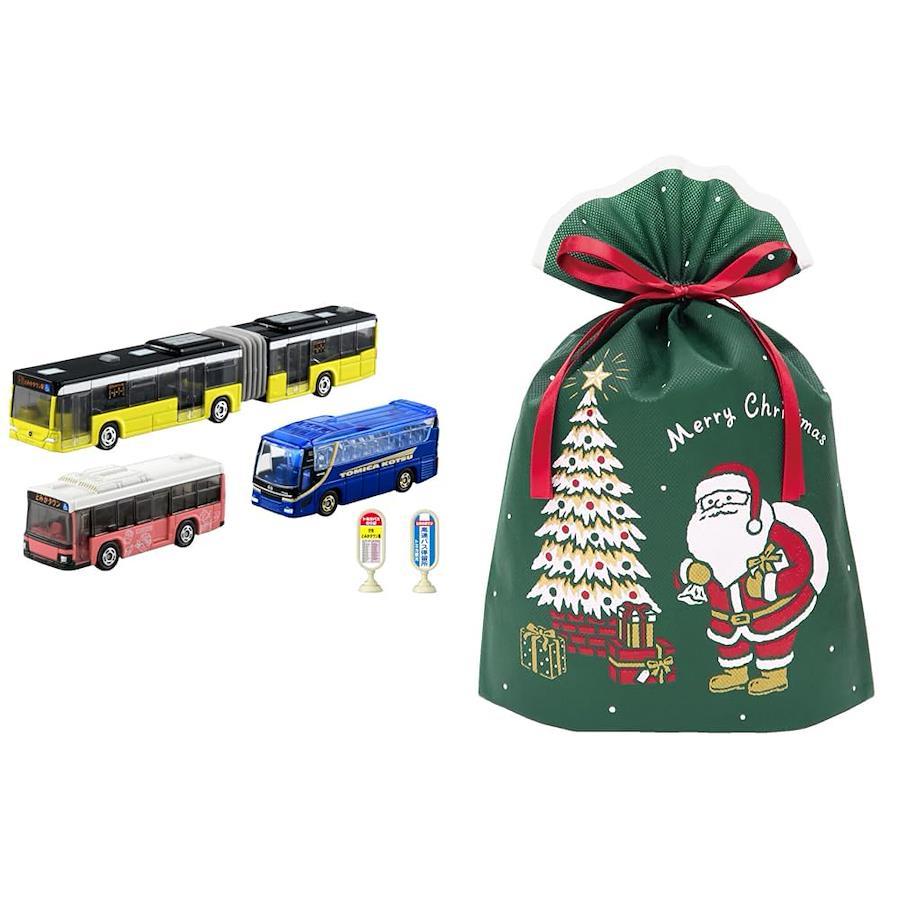 タカラトミー トミカ ギフト 発車します!トミカタウンバスセット ミニカー おもちゃ 3歳以上 + インディゴ クリスマス ラッピングL サンタギフト ダークグリーン XG075