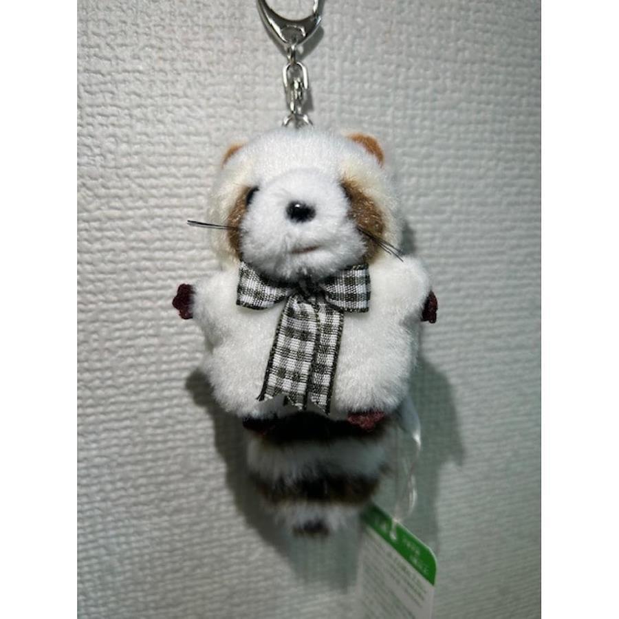 とってもキュートな表情をした、可愛らしいキーチェーン付きのレッサーパンダのぬいぐるみです。