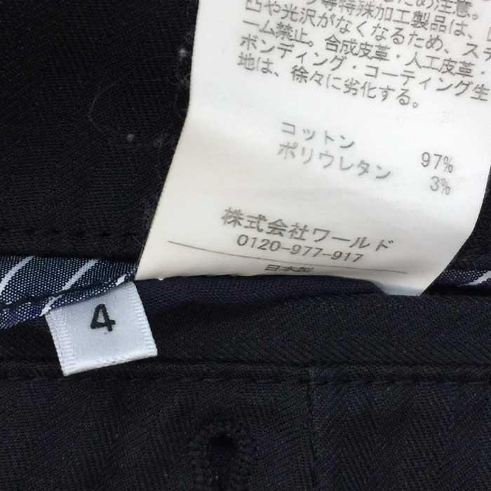 | 商品説明 | 【管理番号】 009977 【ブランド名】 TAKEO KIKUCHIタケオキクチ 【アイテム】 パンツ 【サイズ】 4 平置採寸(ウエスト:約44cm総丈:約96cm 股上:約22.5cm 股下:約73.5cm) 【色・柄】 ネイビー 【素材】 コットン97%ポリウレタン3% 【外観ランク】Aランク |