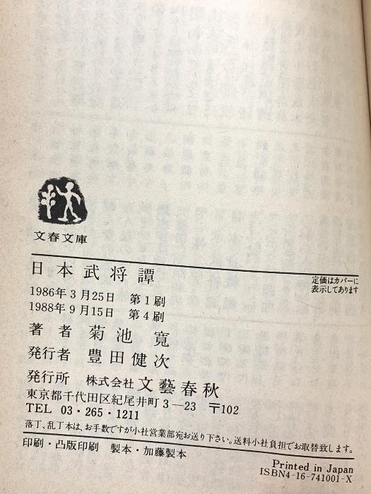 Tales of Japanese Warriors (Bunshun Bunko 4-1) Bungeishunju, Kan Kikuchi