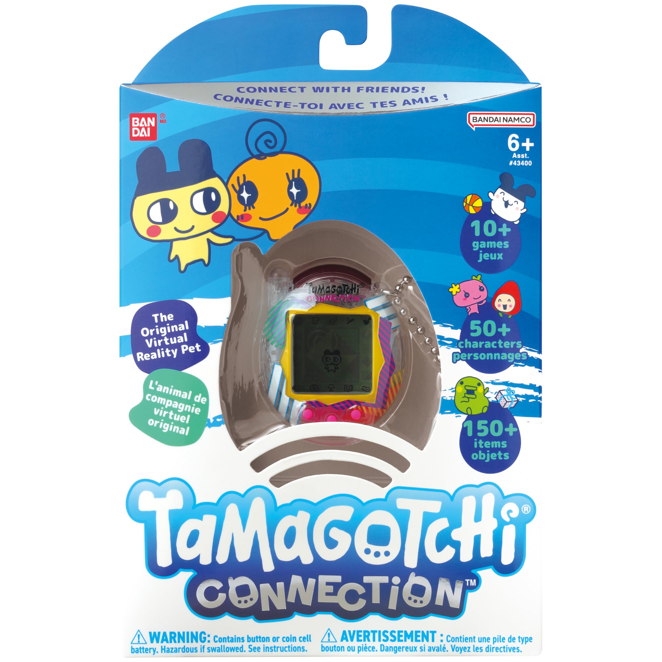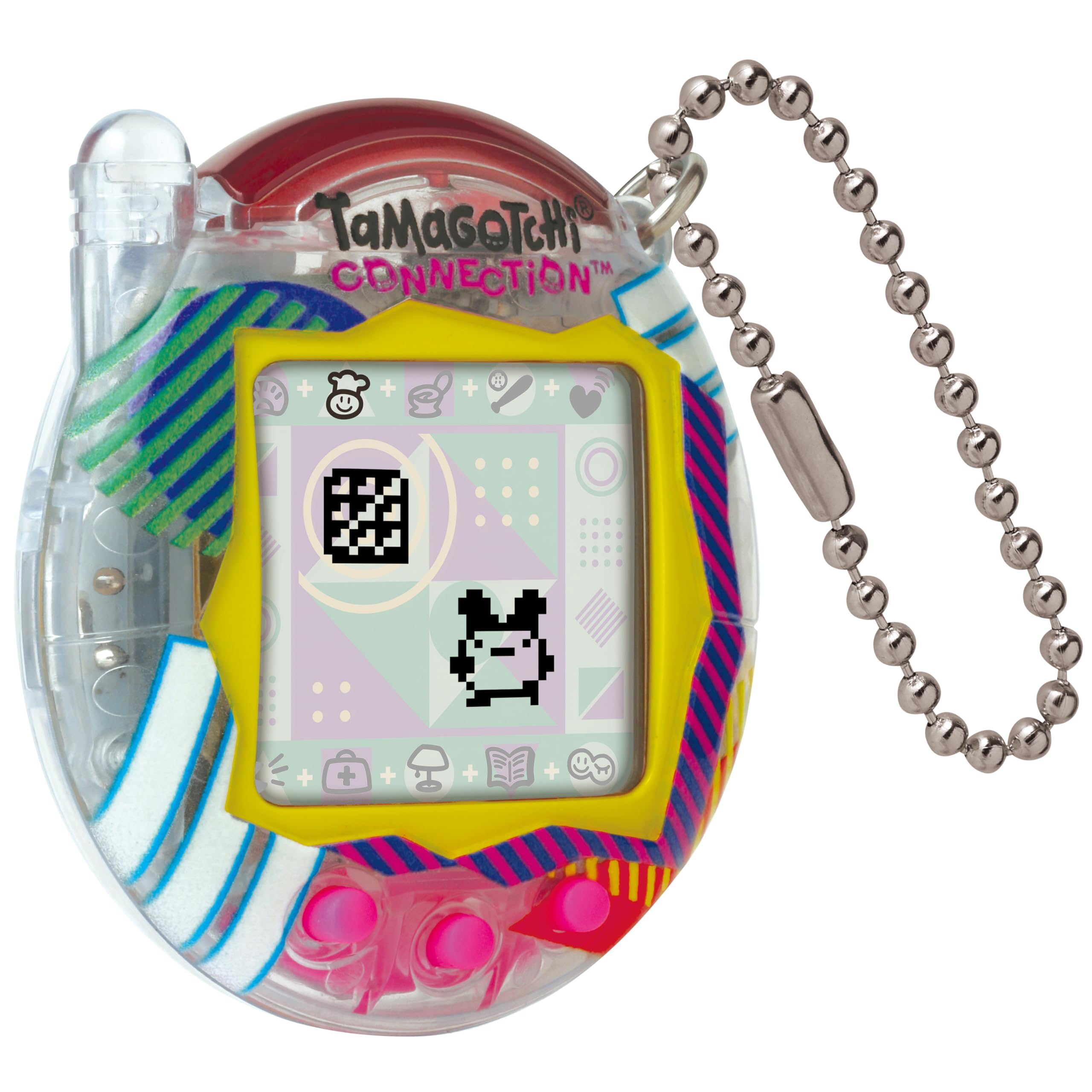 コネクションプレイ付きのオリジナルのバーチャルリアリティペット!ノスタルジックな2000年代のデバイスから改良されたプログラミングで、たまごっちコネクションがトレンディなクリアレトロシェルで復活しました! あなたの世話の仕方によって異なるキャラクターでインタラクティブなバーチャルペットを育てましょう。 一緒にゲームをしたり、食べ物を与えたり、病気になったら治したりすれば、良い仲間に成長します!