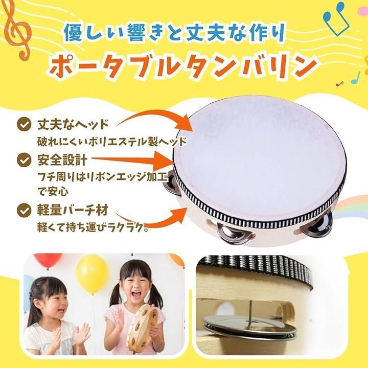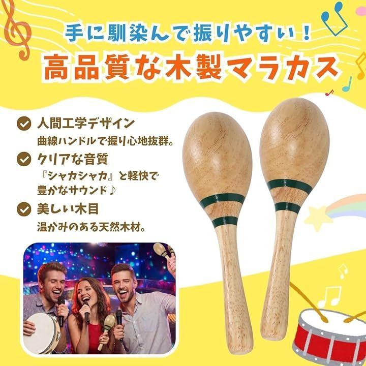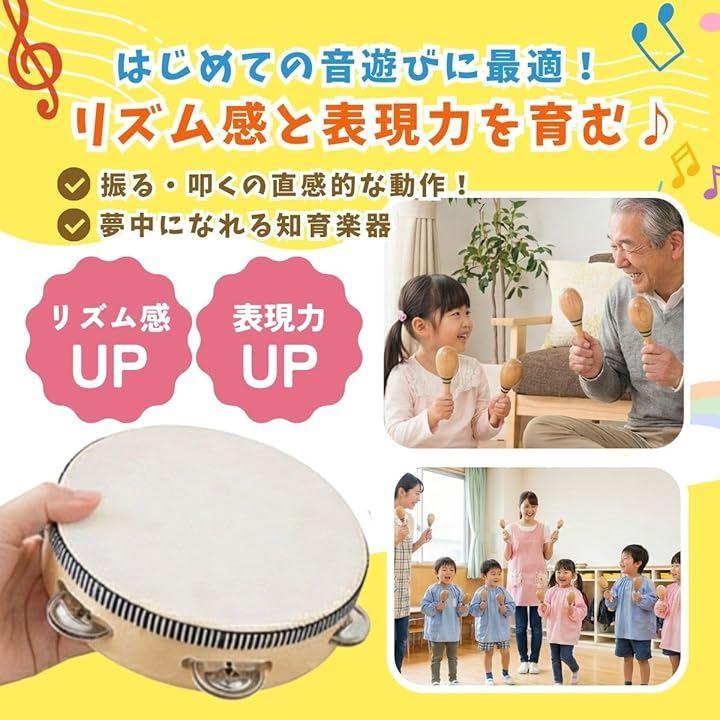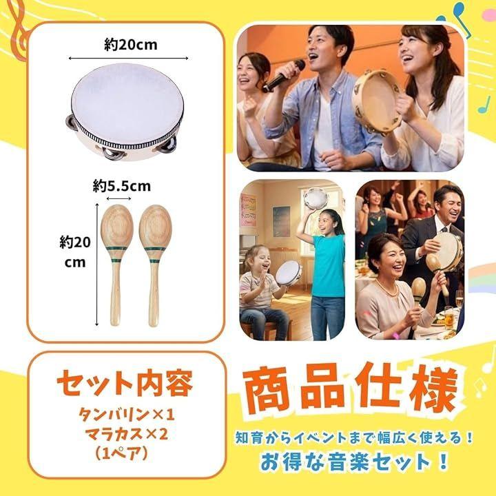 「商品詳細」 <セット内容>:タンバリンx1、マラカスx2本(1ペア) <タンバリンサイズ>:約20cm/素材:バーチ材、ポリエステル、金属 <マラカスサイズ>:約20x5.5cm/素材:天然木材 <特徴>:軽量設計、クリアな音質、安心の研磨仕上げ <用途>:知育楽器、リズム練習、パーティー、カラオケ、イベント *対象年齢6歳以上