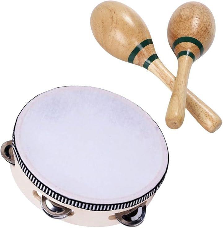Tambourine, maracas, shaker, wooden percussion instruments, rhythm, educational set