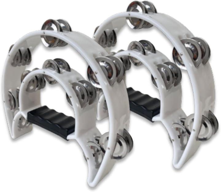 「半円型2列タンバリン」この半円型2列タンバリンは、手のひらにフィットしやすく、自然な握り心地を提供します。