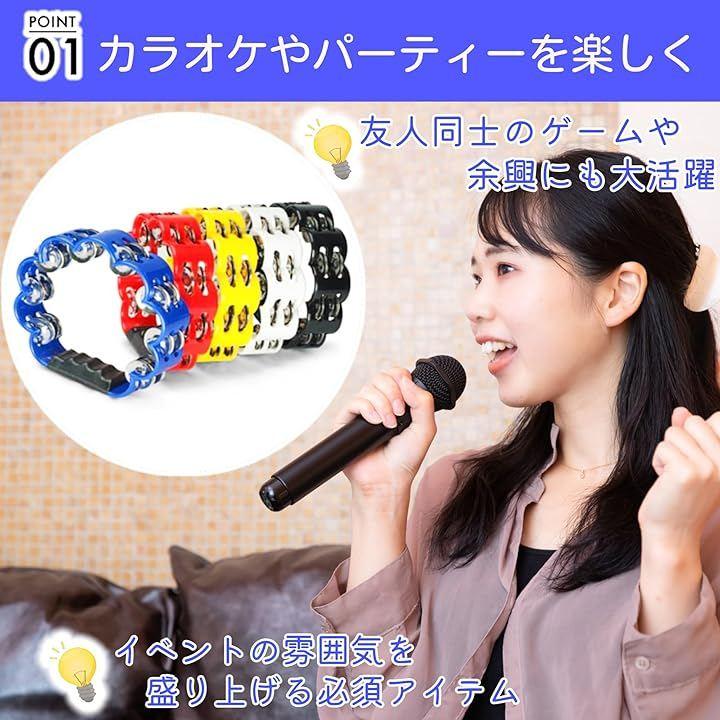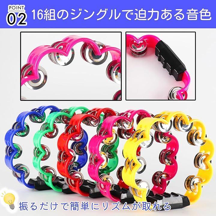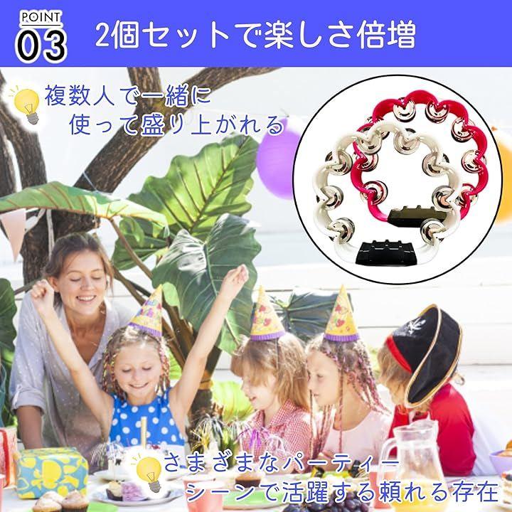 「2個セットで楽しさ倍増」2個セットのタンバリンは、一人で使うだけでなく、家族や友人と一緒に楽しむことができます。