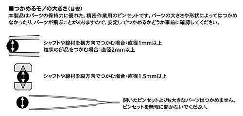 小さな粒状のパーツを安定してつかんだり、シャフトを縦方向につかめるなど、作業性を大幅に改善したピンセット。先端に微小なカギ爪と縦溝を精密加工、通常のピンセットと比べてパーツの保持力が高いのが特徴。RCカーのギヤデフの組み立てや分解に、また小さな部品が多いスケールモデルの組み立てに最適。材質はSUS410ステンレス。
