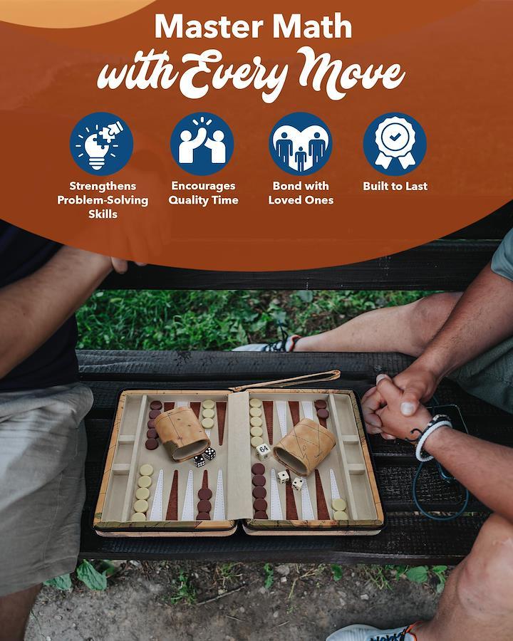 Have an adventurous spirit or a case of wanderlust? No matter where you are on the globe, this map-motif backgammon set makes a wonderful traveling companion It is coveted for its compact size and its sophisticated look. It has a carrying strap and zipper closure. The pieces are magnetic for easy play and the dice cups come in the same "world traveler" map-motif as the case. Sturdy construction with strap and zipper is perfect for travel Cups and points are leatherette with felt lining Includes 30 magnetic backgammon chips Attache closed: 9.25 x 7 x 2 inches Attache open: 18.5 x 7 x 1 inches Chips: .72 in. diameter x .184 in. thick, Dice: .46 in., Doubling Cube: .62 in., Dice Cups: 2.6 in. x 2.3 x 1.3 in