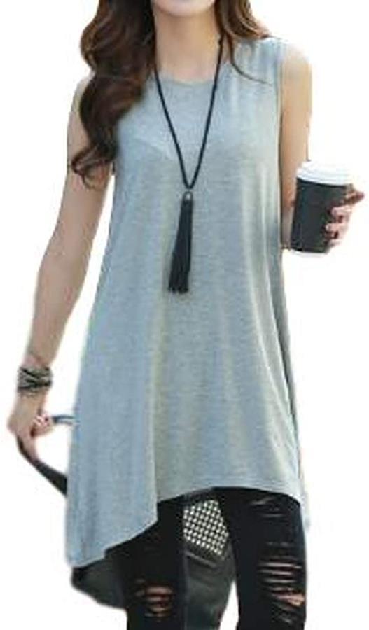 Tank Top Women's Sleeveless Long Shirt Tunic Dress T-shirt Plain