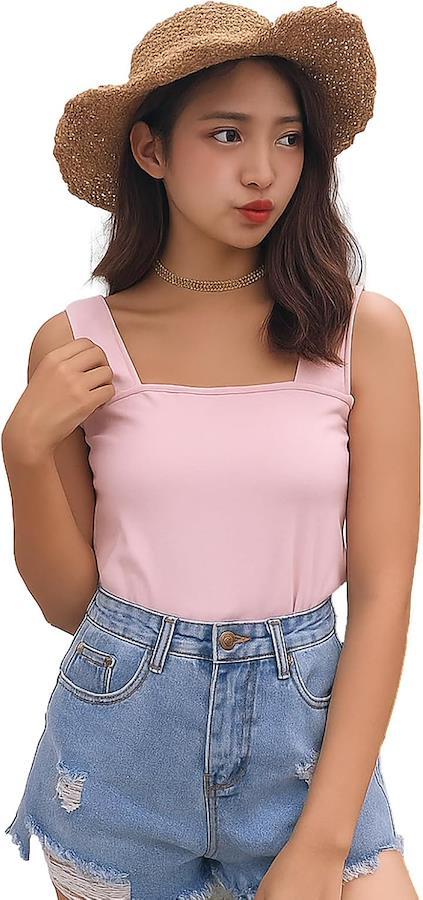 「女性向けタンクトップ」 ブラ紐を隠せるインナータンクトップは、肩紐部分がストラップを覆うようデザインされ、レイヤード時のお悩みを解消します。
