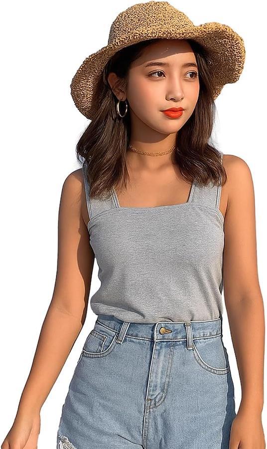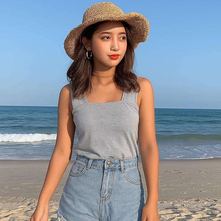 「女性向けタンクトップ」 ブラ紐を隠せるインナータンクトップは、肩紐部分がストラップを覆うようデザインされ、レイヤード時のお悩みを解消します。