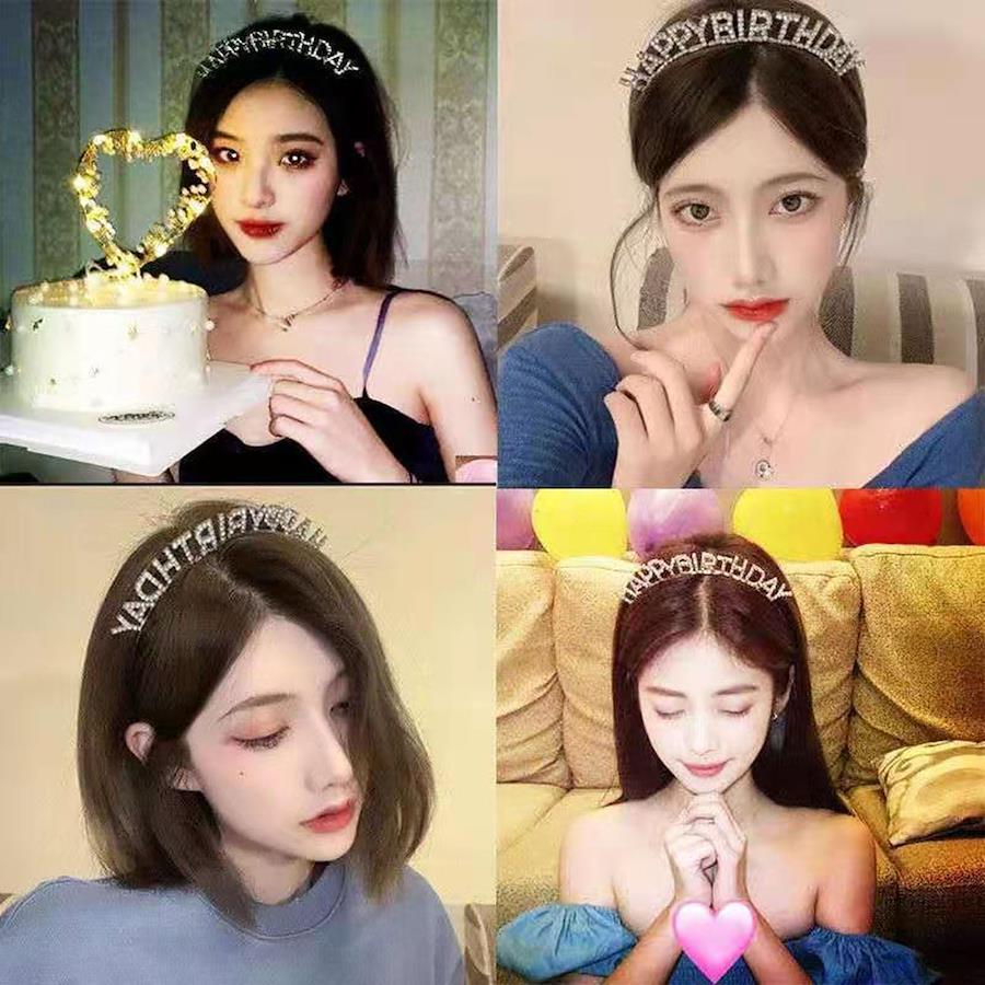 [Tanosimi] Birthday Headband Tiara HAPPY BIRTHDAY Hair Accessory Cute Stylish Popular Party Goods Photo Shoot Party Birthday Women/Girls 2 Color Set