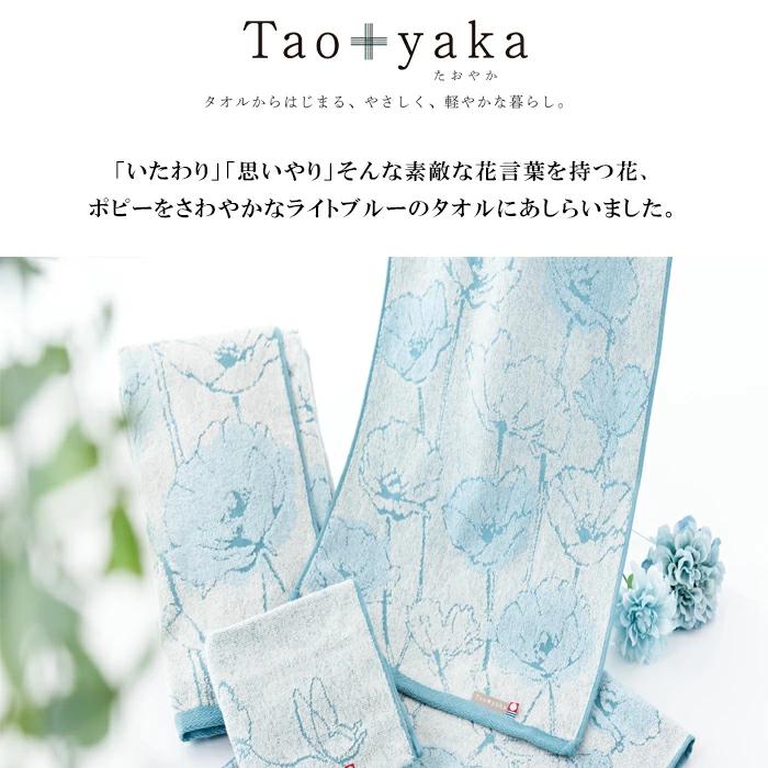 「いたわり」「思いやり」そんな素敵な花言葉を持つ花、ポピーをさわやかなライトブルーのタオルにあしらいました。