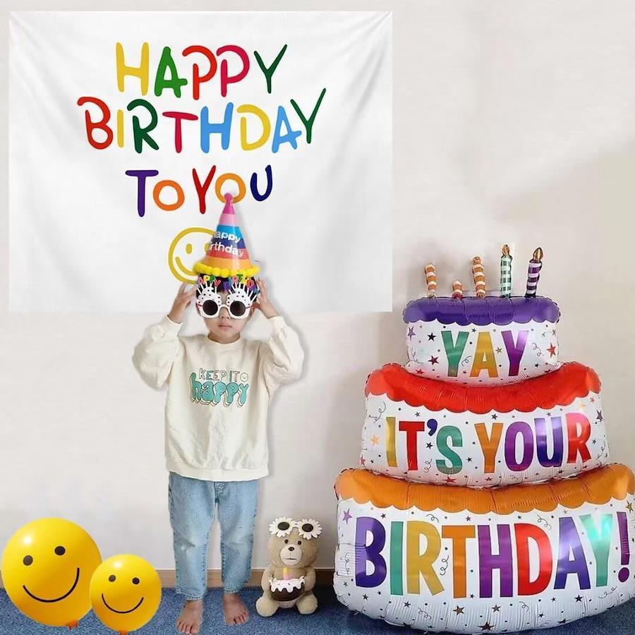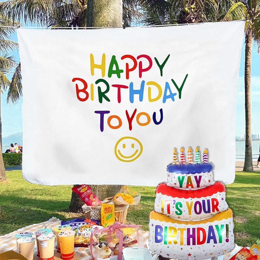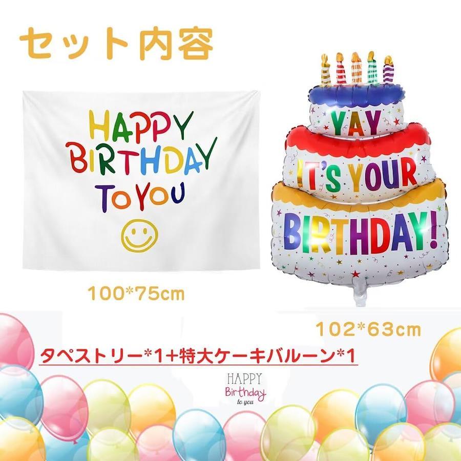 【セット内容】:タペストリー+特大ケーキバルーン【サイズ】:タペストリー(約100*75cm)、ケーキバルーン(約102*63cm)【誕生日グッズ】:おしゃれで人気のバースデー飾り付けセット!気軽にバースデーパーティーの気分を演出でき、すぐに雰囲気を盛り上げます。特別な日を装うためのキーポイントです。記念写真の背景としても最適です。【使用方法】:ケーキバルーンは材質のため、空気を入れるのは八分満ぐらいまででいいです。そうしないと破裂しやすいです。使用後、空気の入れ口に太いストローを差し込むと空気はより抜けやすくなります、ゆっくりと少しずつ空気を抜けてください。【免責事項】メーカーによる商品リニューアルに伴いパッケージ(内容量も含む)変更が行われた場合、新パッケージでお届け致します事ご了承願います。