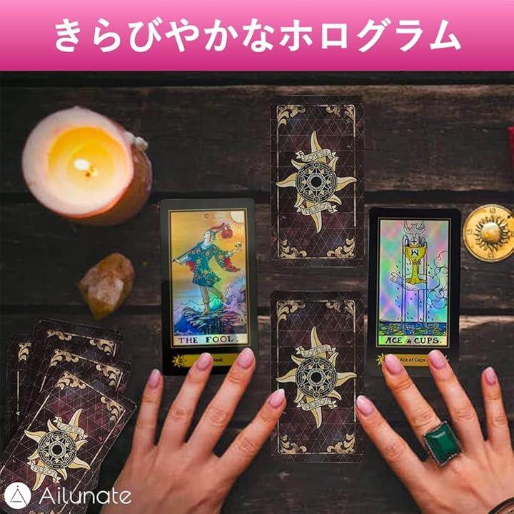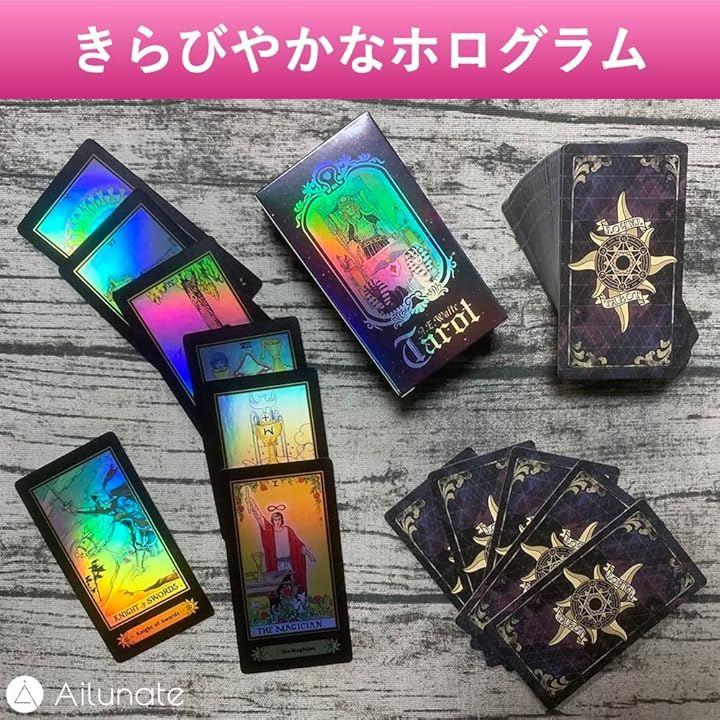 「きらびやかなホログラフィック」キラキラとした綺麗なホログラフィックの絵柄が描かれたウェイト版タロットカードです。