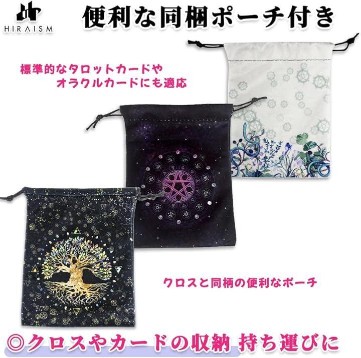 「便利な同柄ポーチ付き」クロス収納はもちろん、標準的なタロットカードやオラクルカードにも適応できる同柄のポーチが付属しております。