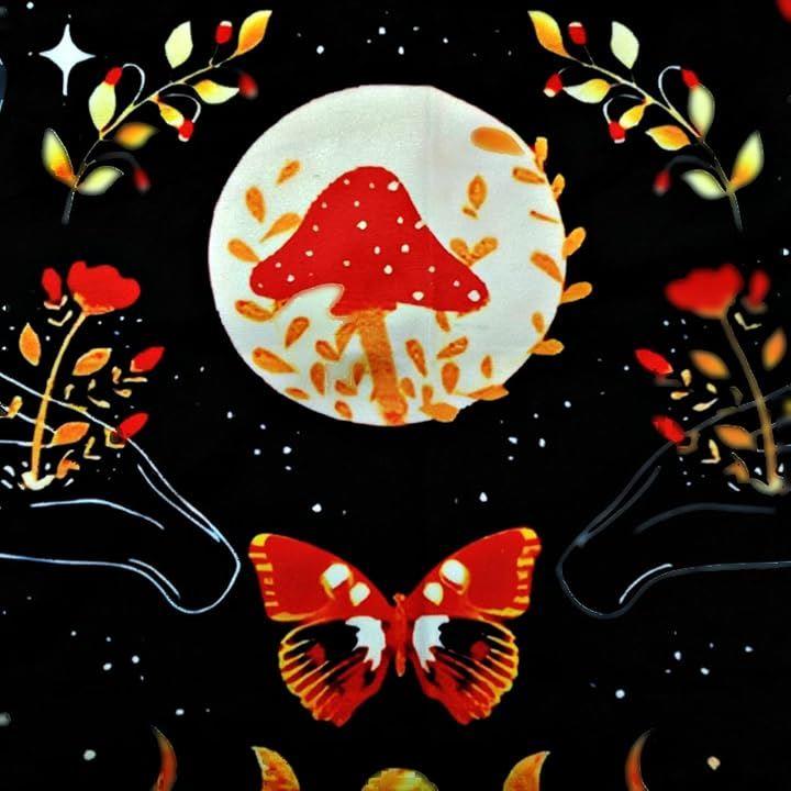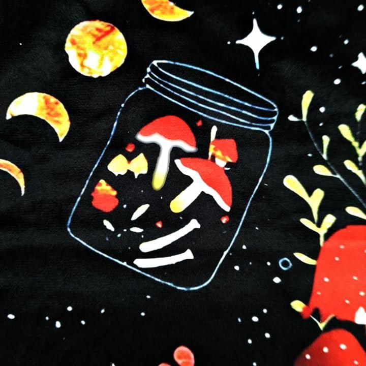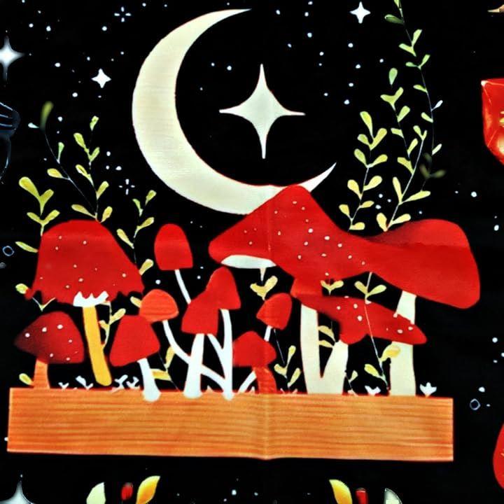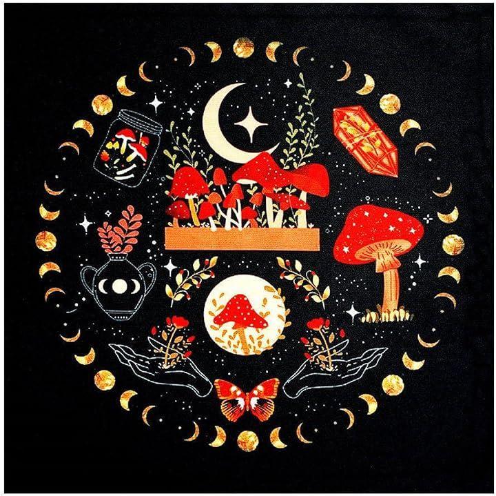 タロットマットには、カラフルで不思議なきのこのデザインが施されています。