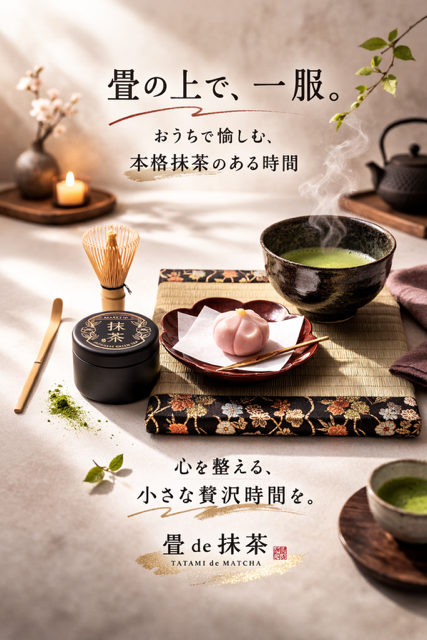 本格的な製法で作られたミニ畳と茶道具をパッケージング。畳の上でお茶を点てるという茶道の伝統を守りながら、自宅やオフィスのテーブルで気軽に抹茶を楽しめる商品です。【セット内容】・和紙ミニ畳(200mm×200mm)・抹茶碗・茶筅(竹)・茶杓(竹)・抹茶缶(抹茶20g入り・賞味期限:2026年10月)