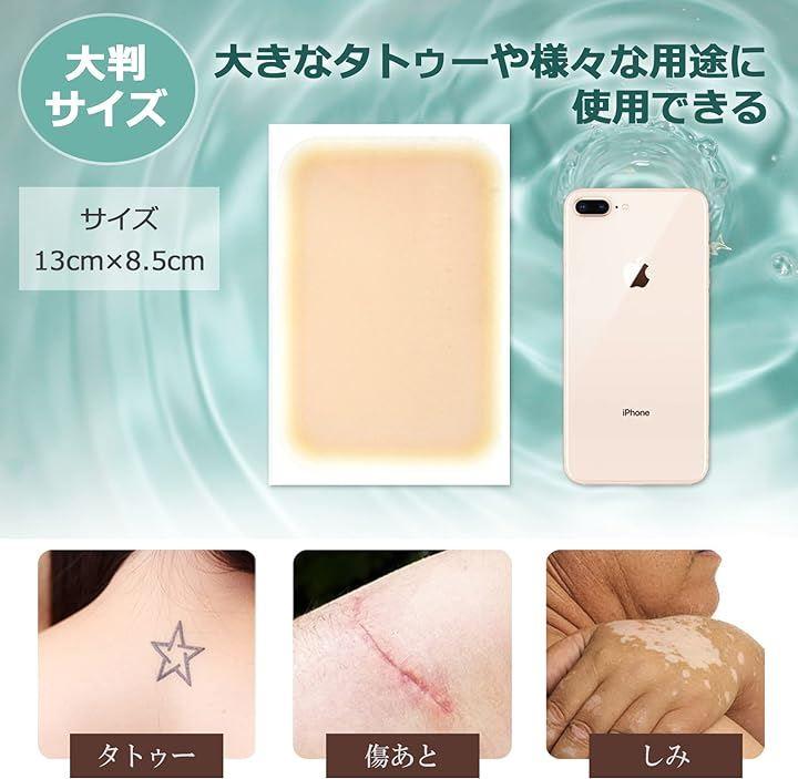 タトゥー隠しシールは、厚さ0.02ミリの極薄、大きめタトゥーもしっかり隠す大きな13x8.5センチ。
