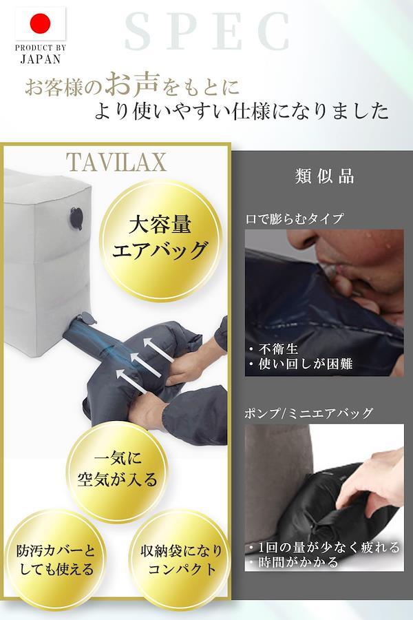 【ちょっと贅沢な移動時間】旅行や外出の移動を快適に過ごせるだけでなく、ゆとりのある姿勢を保てることで心までリラックスし贅沢な移動時間を。TAVILAXが満を持してご提供する旅行便利グッズ。 【現役CA監修のフットレスト】 機内の過ごし方のプロとも言えるCAが監修するフットレストだからこそ、ベストな製品に仕上がりました。飛行機内での空間がより一層に楽しい思い出となるよう座席で心地よく過ごせる設計にこだわりました。エコノミー症候群 予防グッズとしてもご好評をいただいております。国内旅行 海外旅行問わずご使用可能です。 【お好みに合わせれる高さ調整】 足を乗せたまま空気の弁を指で押すだけで高さ調整も自由自在。飛行機内 / 車 / 新幹線 / バスだけでなく デスク下やソファのオットマンとしてもご使用いただけます。車の後部座席で子供の足置きにも最適です。 【収納袋1つで3役】 組立時の空気入れ 、使用時の防汚カバー、使用後にコンパクトにしまえる収納袋の機能の全てが収納袋1つにおさめました。防水・防汚加工を施しているため、保管性にも優れ長くお使いいただけます。 【女性でもカンタン組立】説明書の付属はもちろんですが、旅行だけでなく携帯性が抜群に高いため、すぐに使用できるよう女性でもカンタンに組立ができる設計。お子様とお出かけ時に車で使うにも、リビングで一息つくにも、どこでも使っていただきたい想いからカンタン組立が実現しました。 【他にはない早見表付き】 TAVILAXは、せっかく空港まで持って行ったのに使えなかったという事にならないよう他社にはない使用可否 早見表を付属しております。使用不可なフットレスト商品が多い中でTAVILAXフットレストは多くの航空会社でご利用できます。 【仕様】本体サイズ : 40*30*45 cm 重さ : 約400g 収納時サイズ:26*22*5 cm 【付属品】取扱説明書、使用可否早見表 【保証】万が一の不良などございましたら90日以内であれば迅速にご対応させていただきます。