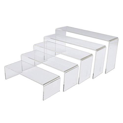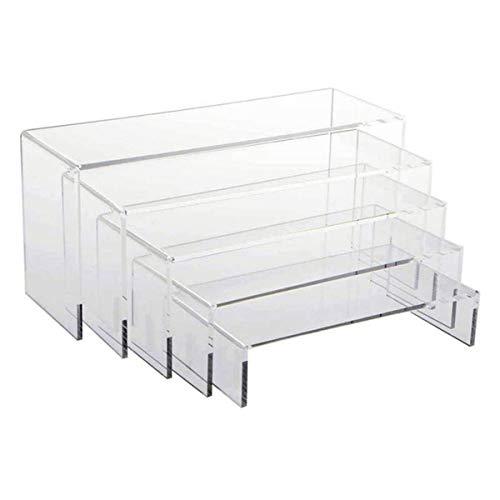【商品仕様】サイズ(cm):18*8*4、20*8*6、22*8*8、24*8*10、26*8*12 各一個。 材質:3mmアクリル【自由収納】コの字型なので小物の置き方も様々です。時計や靴、コスメ、フィギュアなど小物をおしゃれに収納します。また、お店での商品展示・販促にもおすすめです。【保護フィルム】両面に保護フィルムを貼っておりますので、使用時にはフィルムを剥がしてご利用ください。【5種類セット】透明ですので、陳列するモノのイメージを壊さず、自然な見せ方が可能です。高さが違うものが5種類セットになっておりますので、乗せるモノの大きさや場所に応じて柔軟にお使い頂けます。【クリアタイプ】クリアタイプでどんなお部屋の雰囲気にもマッチます。安定感があり使いやすい!