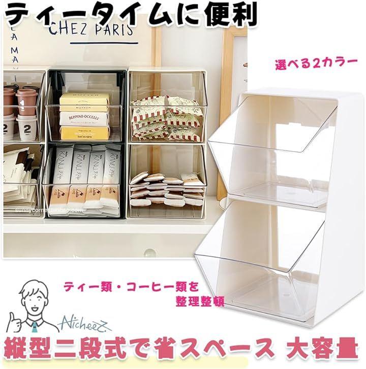 「ティータイムに便利」ごちゃごちゃしがちなティーバッグ、コーヒーやシュガー・ミルク・スティックなどを整理整頓して保管収納できるボックスです。
