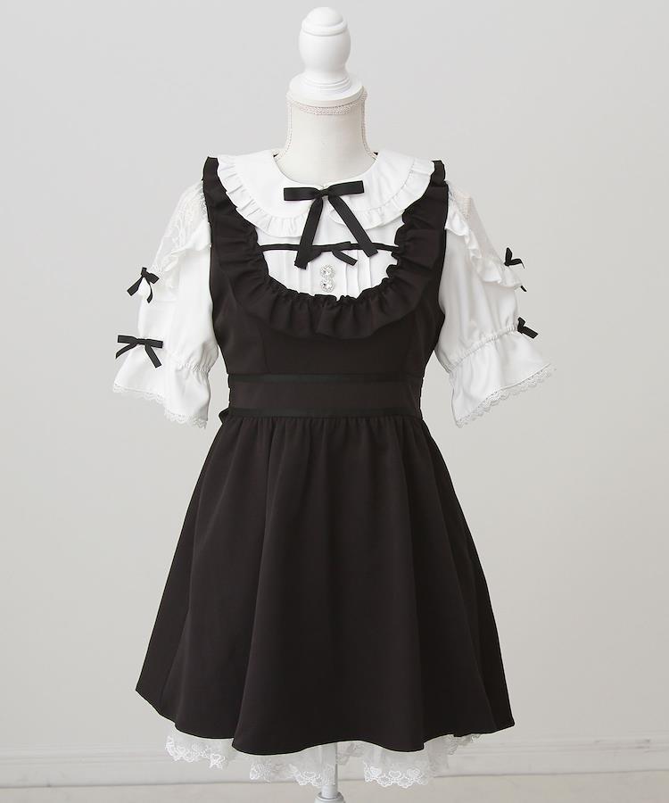 大きめヨークデザインにフリルたっぷりの甘めメイドさんワンピースが登場♪