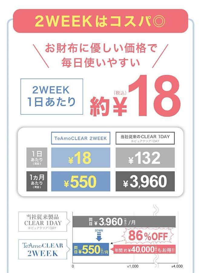 2weekコンタクト(1箱6枚入り) 直径:14.2mm B.C:8.6mm 含水率38% 医療機器承認番号:30300BZX00143000