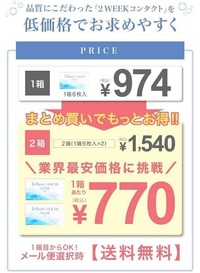 2weekコンタクト(1箱6枚入り) 直径:14.2mm B.C:8.6mm 含水率38% 医療機器承認番号:30300BZX00143000