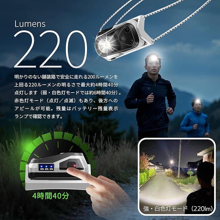 TeamOneDay Hakone Ekiden Runner-Designed Headlamp, Rechargeable, Lightweight (38g), 220 Lumens, Waterproof, Sensor Switch, Mini LED Headlamp for Running, Outdoor Activities, and Mountaineering, Makes a Great Gift