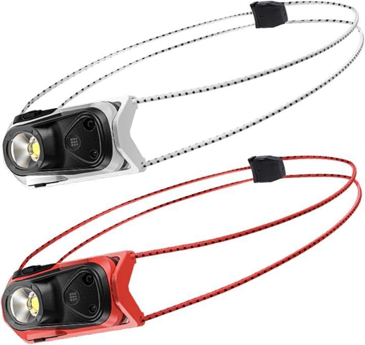 「この商品はお得なホワイト1個・レッド1個の2個セットです」「箱根駅伝ランナー監修」ヘッドライト最軽量38g(バッテリー、ストラップ含む*当社調べ)。